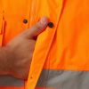 Fosforlu Oxford Parka 2 Renk JN 1014 EN ISO 20471 Yüksek boyunlu gizli kapuşon , kapuşon kordon lastikli Çift yönlü çıtçıtlı fermuar . alt kıısmda iki adet düz kapaklı cep iç kısımda portföy cep bir adet telefon cebi, fermuar kapak altında gizli cep iki adet omuzdan iki adet gövdeden her iki koldan reflektörlü bant.